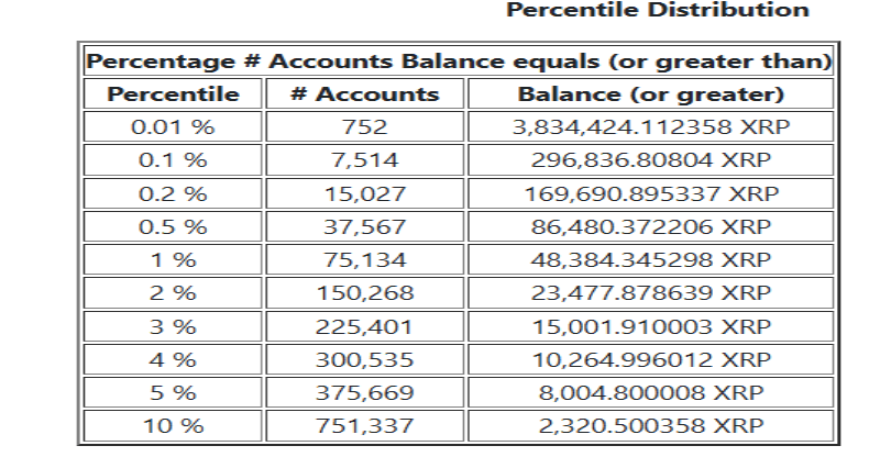 最有意思的是不同层级钱包的增长差异。在所有层级中,前10%的钱包数量增幅最大,足足新增了9924个,占总新增量的近40%。紧随其后的是前5%和前4%的层级,分别新增4962个和3970个钱包。反观最顶尖的两个层级,增长则十分缓慢:前0.01%的顶级富豪仅新增100个钱包,前0.1%的高净值群体更是只多了11个。这背后的原因很简单——门槛实在太高:想挤进前0.1%,至少要持有29.6万个XRP,按当前2.1美元的价格算,市值超过62万美元;而要跻身前0.01%,则需要持有383.4万个XRP,价值高达800万美元,普通人根本难以企及。