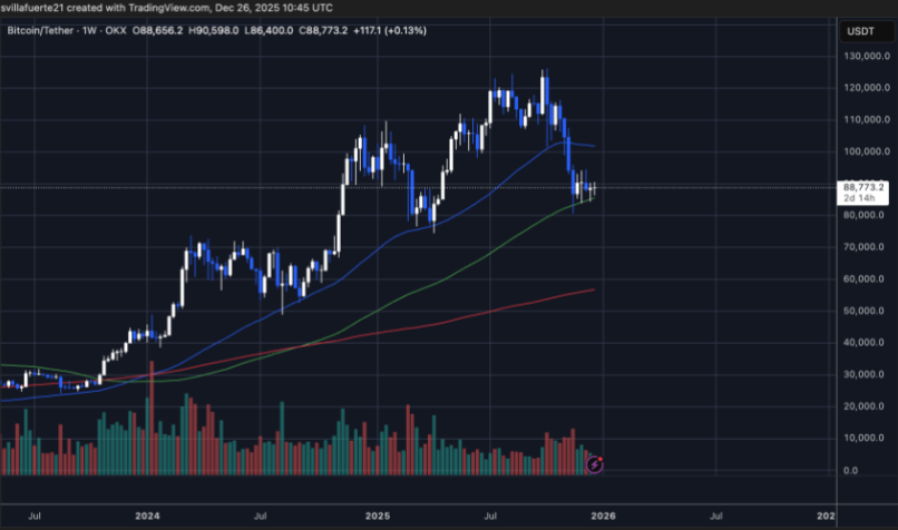 从关键价位来看,86,000美元至88,000美元区间堪称“生死线”。这一区域不仅是短期成交密集区,更关乎长期看涨结构的完整性:守住该区间,意味着自2024年以来的整体上升趋势仍能维持;一旦有效跌破,可能触发进一步回调,下一个支撑位将看向84,000-84,500美元区间,甚至测试11月低点8万美元。