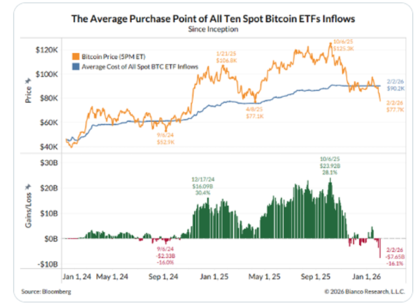 JimBianco强调,只要没有新的、能让人信服的买入叙事出现,资金流出的趋势就会一直持续。曾经被当成“利好”的机构高位持仓,现在反而变成了市场最大的压力源——就像一座装满了水的大坝,平时看起来很稳固,但只要出现一个小缺口,就可能引发溃坝。比特币现在最核心的问题,不是过去有多火,而是在当前价位,下一批买家到底在哪里?