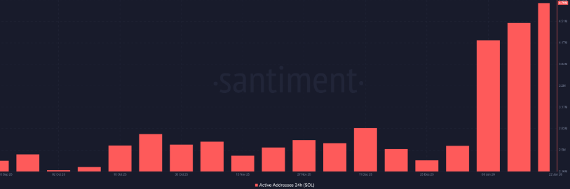 巨鲸与长期持有者的同步加仓,进一步印证了机构资金的布局逻辑。数据显示,持有1000至10000枚SOL的钱包控制着约4800万枚代币,占流通量的9%;持有至少10万枚SOL的巨鲸地址,总持仓从去年11月中旬的3.47亿枚增至3.62亿枚,占总供应量的64%。长期持有者的净增持量在1月中旬达到385万枚,创下15个月以来的峰值,而上一次类似规模的积累后,SOL价格曾实现接近翻倍的涨幅,这也为当前机构的布局提供了历史参照。